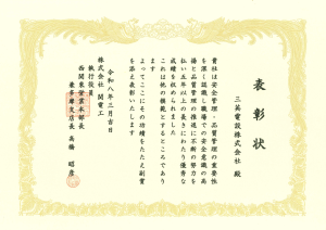 安全・品質の優秀な管理に対し、表彰状を頂戴しました!!